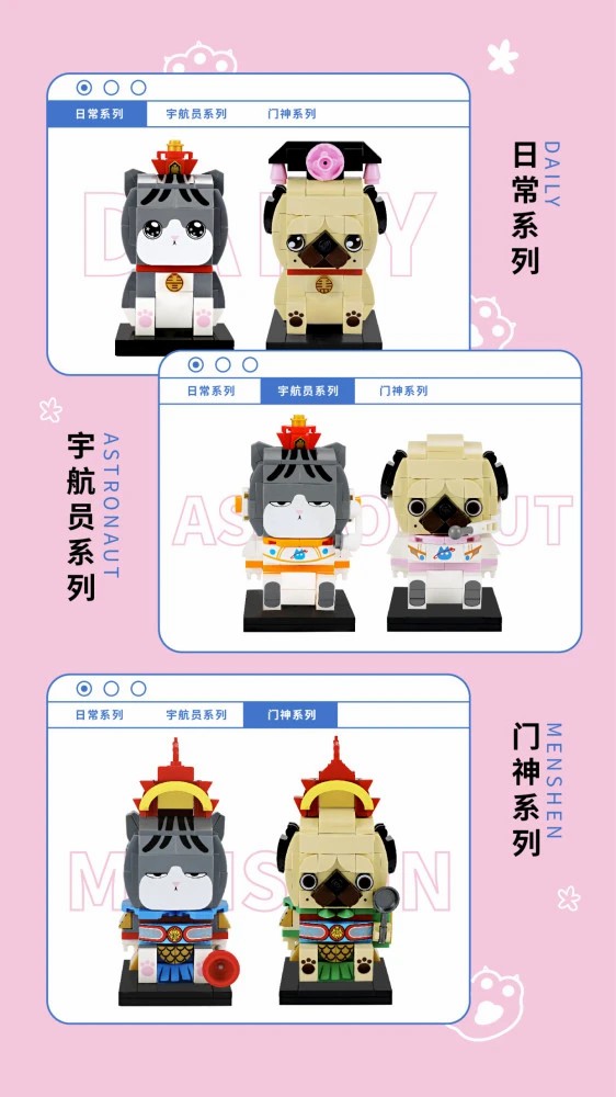 吾皇萬(wàn)睡×古迪積木此次共上線“經(jīng)典系列、航天系列、門神系列”的六款聯(lián)名積木。為最大限度地還原#吾皇巴扎黑#的可愛形象,系列積木特別采用了具有弧度顆粒方塊進(jìn)行設(shè)計(jì)制作,為積木的整體造型增添了視覺上的Q萌感,還原了吾皇傲嬌、巴扎黑呆萌的小性格。