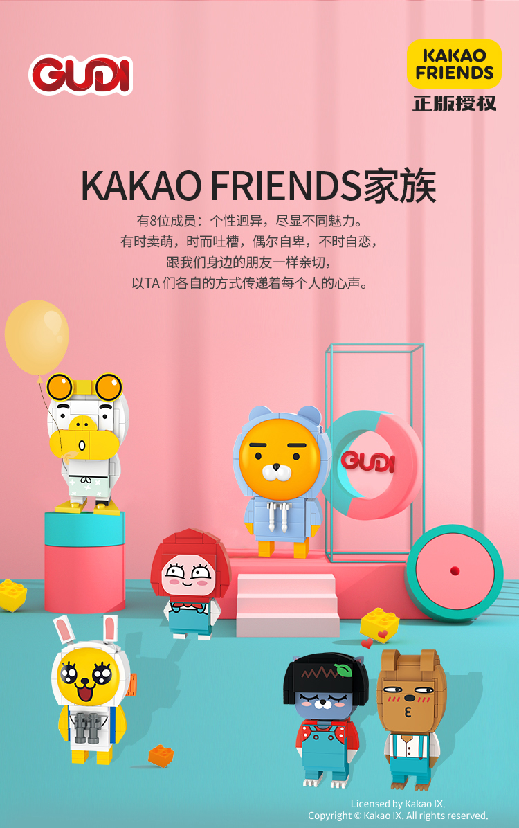 古迪積木12+新品, 由IP衍生的積木拼搭人仔KAKAO FRIENDS系列,就是古迪積木品牌升級(jí)打響的第一槍。