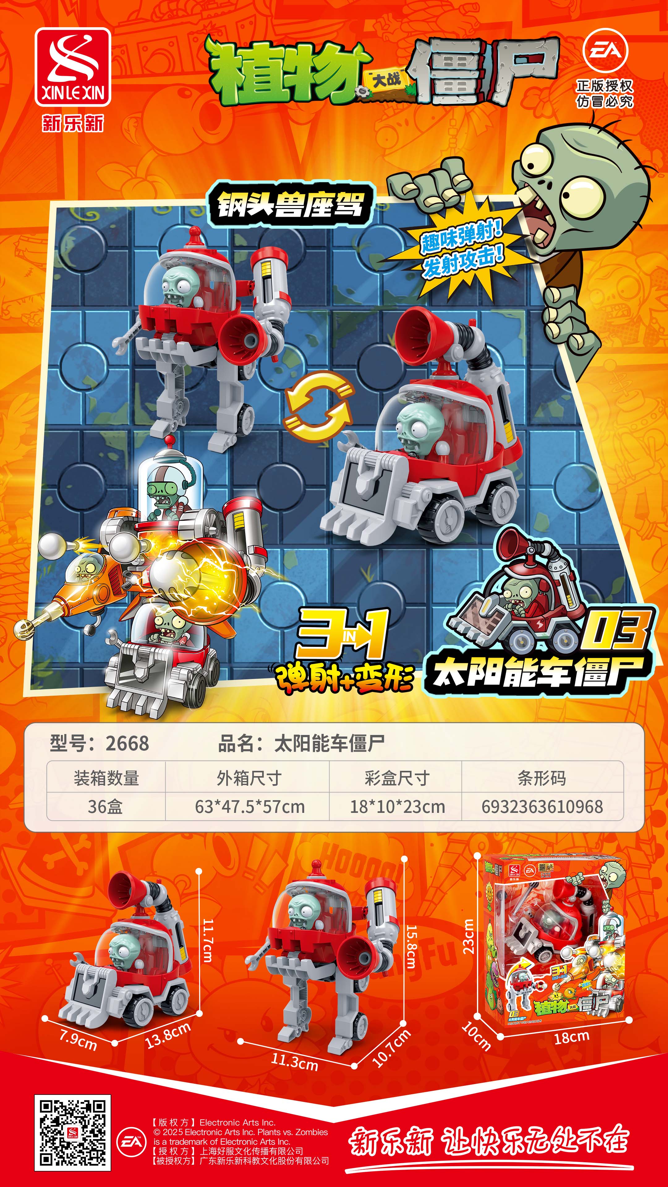 產(chǎn)品規(guī)格:太陽能車僵尸:7.9*13.8*11.7cm,鋼頭獸座駕:11.3*10.7*15.8